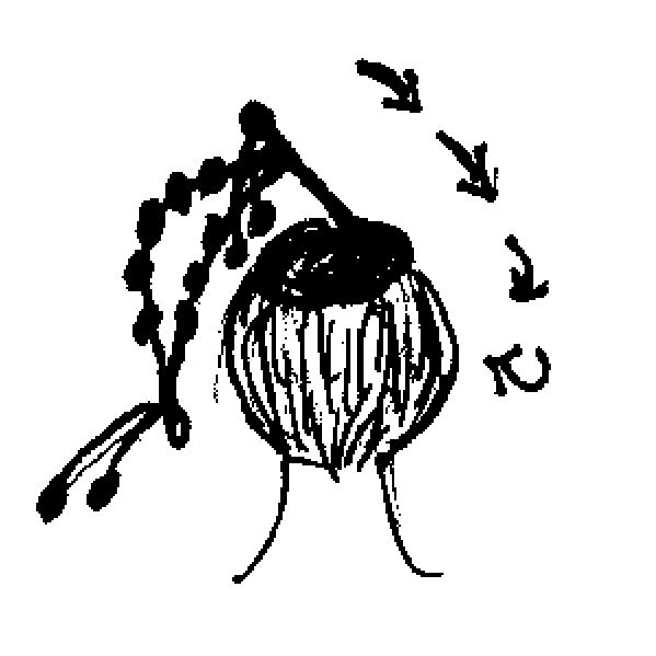 Hold the loop in one hand & grip the stick/quill like a pencil in the other. Poke it into the outermost wind of your bun (on the same side as the hand holding the quill) touch the scalp, and push it through the hair pointing it AWAY from the head, toward the ear. |